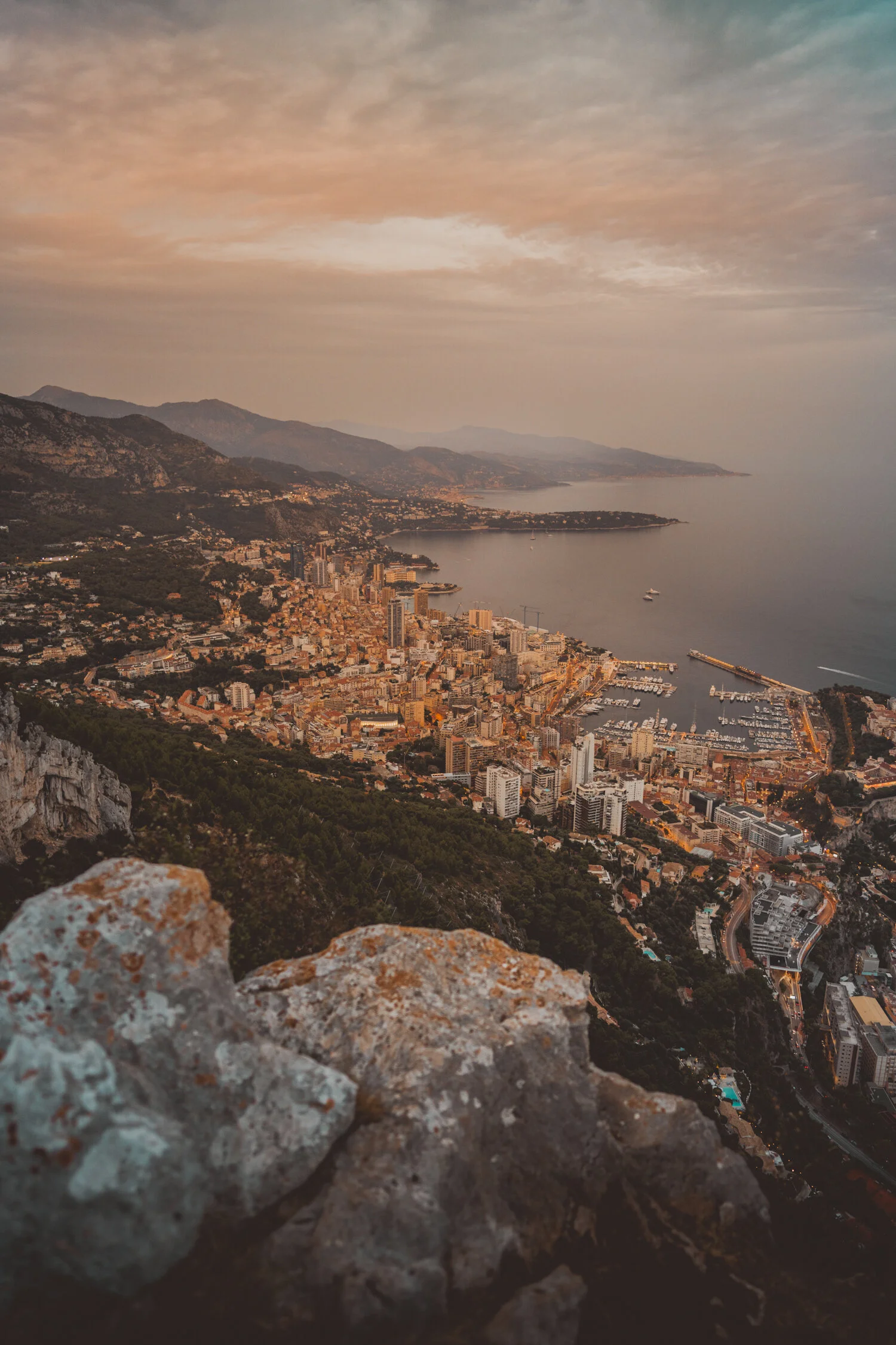 Tête de Chien which means Dog’s Head is a 550-meter-high rock with a spectacular view, located near the small town La Turbie. Sunset there was one of our highlights during the French Riviera trip, it blew me away. You can get to this place by car and leave it in the free parking. This dramatic viewpoint is only a short walk apart. From one side of the hill, you can admire boundless landscapes of the coast and the mountains, from another charming country and city of Monaco. Looking at the western side you can spot Cap d’Ail, Cap Ferrat, and Villefranche-Sur-Mer. You should definitely visit Tête de Chien for a sunrise or a sunset, it was my favorite photo spot on the French Riviera trip.
